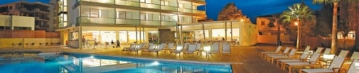 Hotel Aimia is a modern hotel with a large pool including a child friendly shallow section, solarium, restaurant, reading area, spa with sauna and jacuzzi, gym and fitness area perfect for relaxing after a day touring the island. Also ideal for business meetings with its conference hall. Airecel, the hotel restaurant is a true delight offering modern Mediterranean al fresco by the pool in a tranquil, modern setting with views onto the mountains. The modern architecture is simple and functional as well as child friendly. Most of the 43 rooms overlook the sea and are equipped with air-conditioning, minibar, phone, internet access, safe, hairdryer, magnifying mirror, bathrobe and slippers.