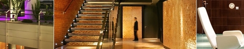77 luxurious rooms, many with balcony and 8 duplex suites with access to semi private terrace and pool. All decorated in rich natural materials - leather, zebra wood and red bricks.
